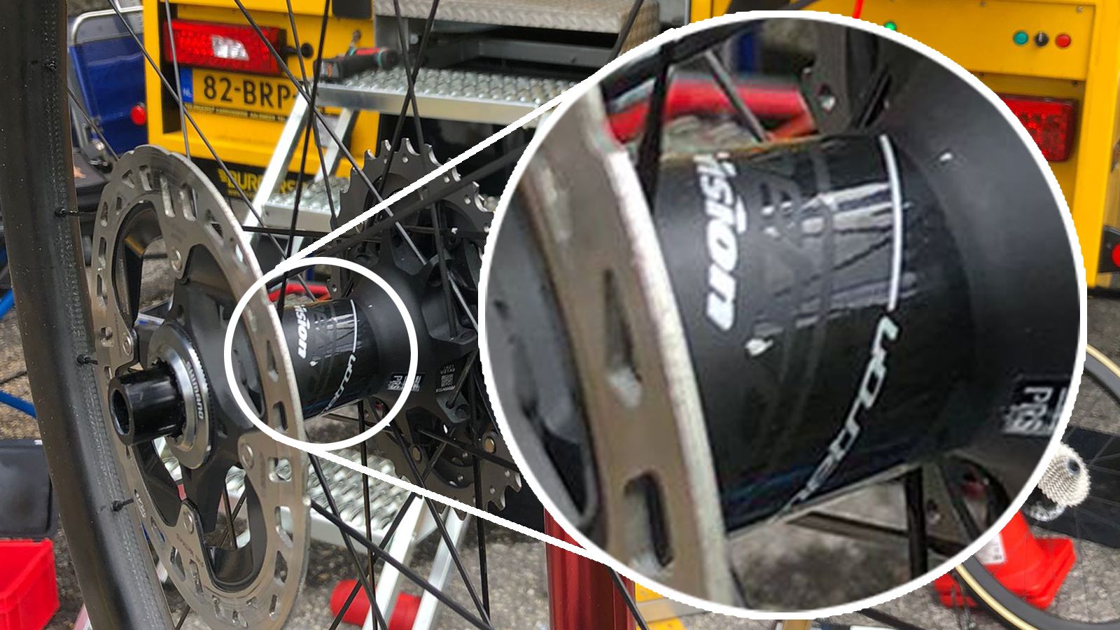 Team DSMが雨の第9ステージで使っていたホイールにはブランド名のないホイールが使われていた。
