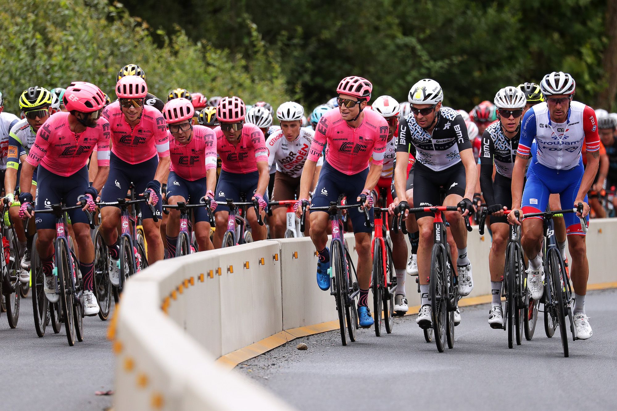 タイトなコーナーで、ミッケルフレーリク・ホノレ(Deceuninck-Quick-Step)は壁にぶつかってしまう。