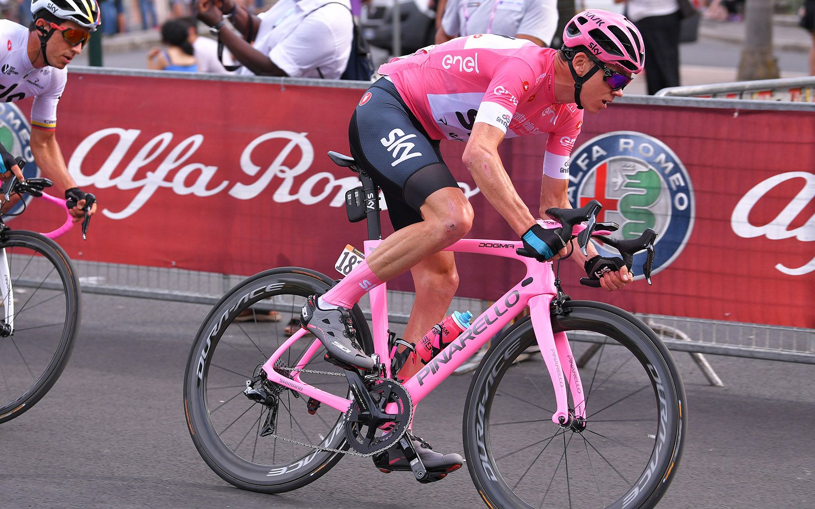 Fausto Pinarelloがトップチューブに署名して、ローマの最終ステージにピンクカラーで登場した。