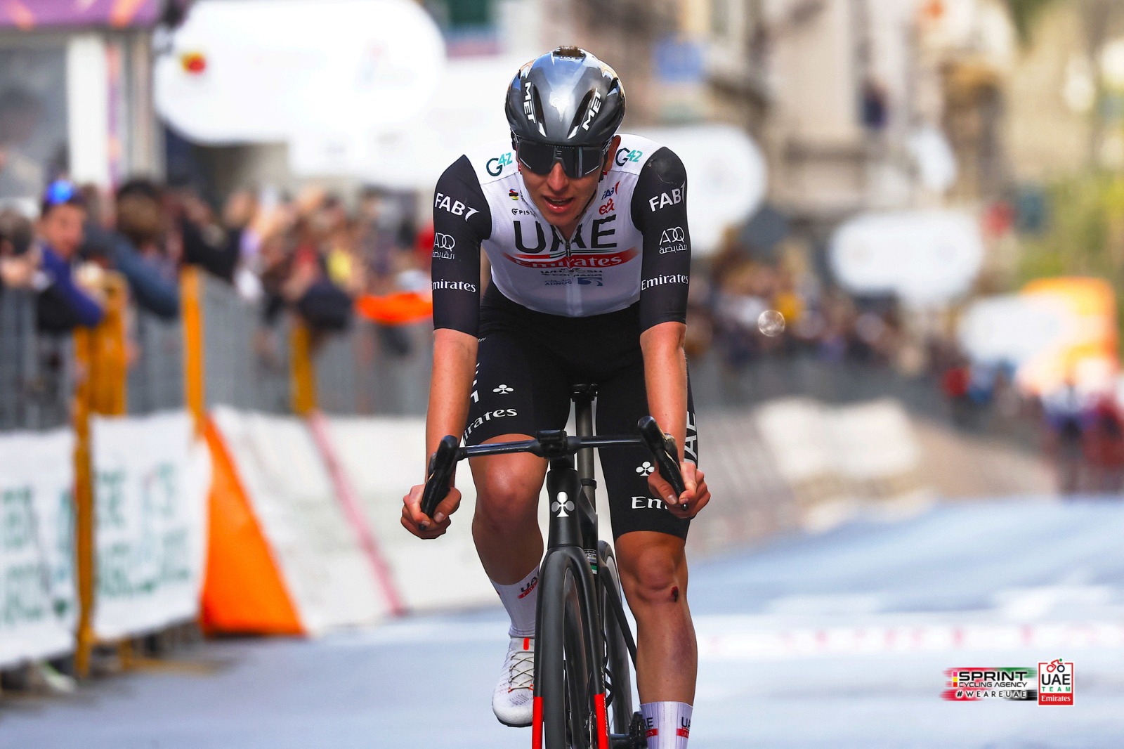 結局タデイ・ポガチャルの攻撃は、ポッジオの頂上手前1.3kmからとなる。だが、全開で引いてもフィリッポ・ガンナには真後ろに張り付かれて全く引き離せない。