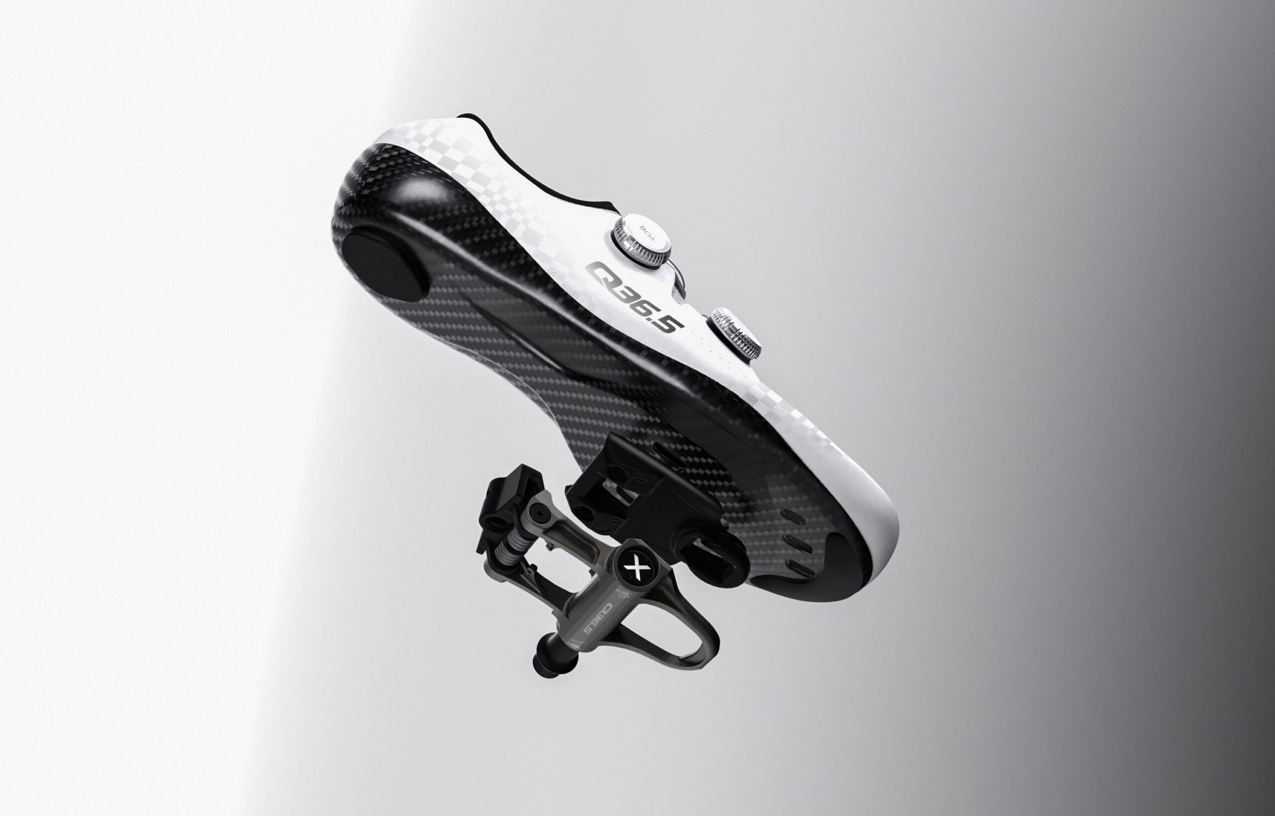 Q36.5の創設者ルイージ・ベルガモ氏が、極薄の靴底と特定のクリートシステムをテストする中でその利点を発見し、SRMの創設者ウルリッヒ・ショーベラー氏にさらなる削減を依頼したことから、このプロジェクトはスタートしている。