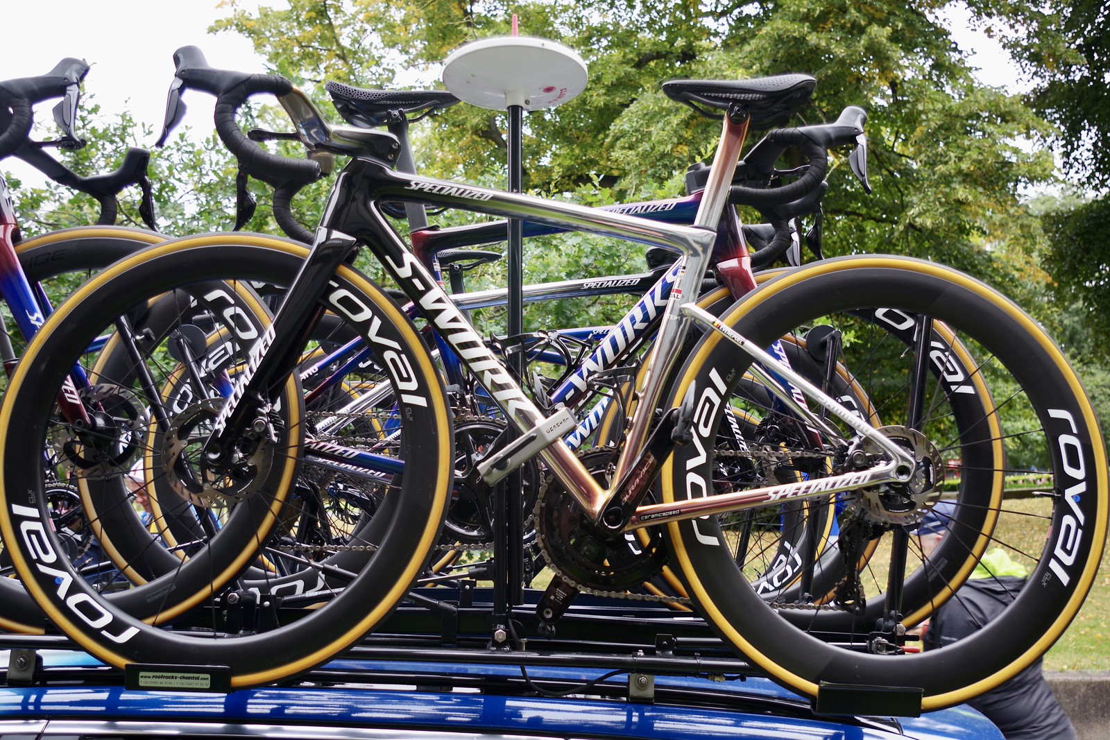 ゴールドは、SRAMのロゴ、チェーン、リアカセット。これもキラリと光っていい感じだ。これまでのレムコ・エヴェネプールが乗った特別仕様の中で一番いいのではと思う。