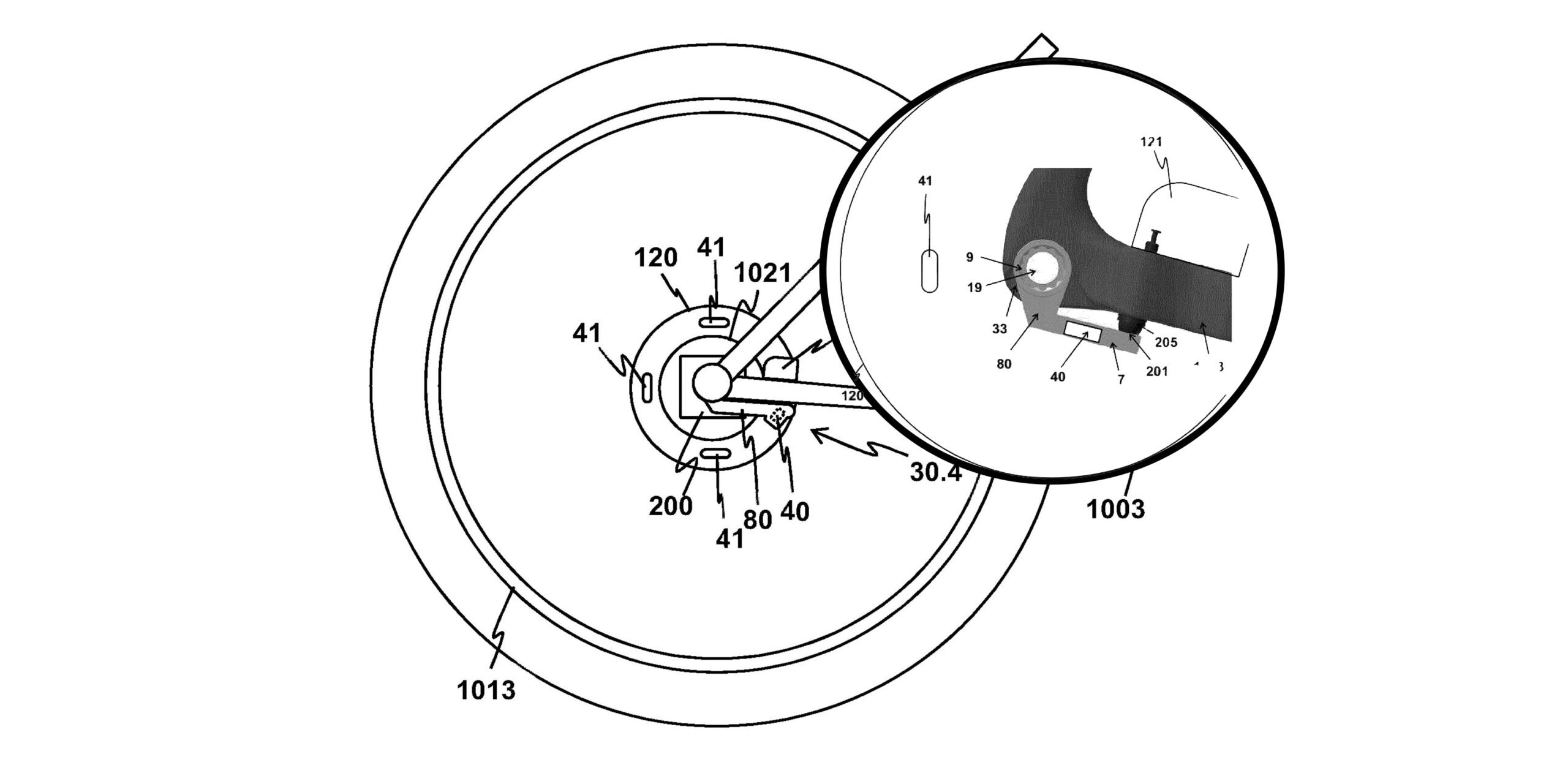 Classifiedの特許出願では、ハブの回転による運動エネルギーと、太陽エネルギーが電流に変換され、シフト システムのセンサーとアクチュエーターを再充電するシステムについて説明されている。