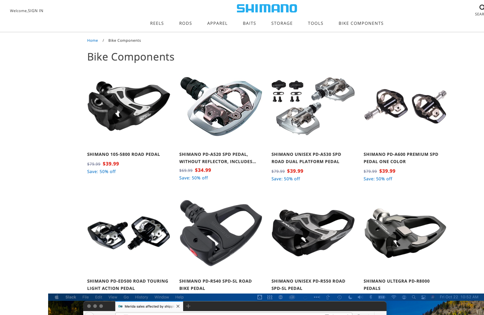 ちなみに、ロードバイクペダルの製品ページでは、すべてが半額程度の値段で売られている。