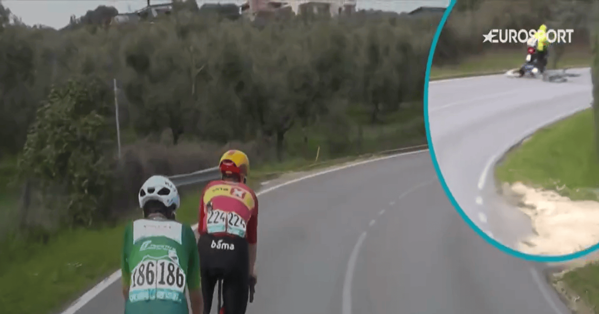 2026 ティレーノ〜アドリアティコ第4ステージ ミヒャエル・ゴグルがTVバイクに轢かれるショッキングな映像