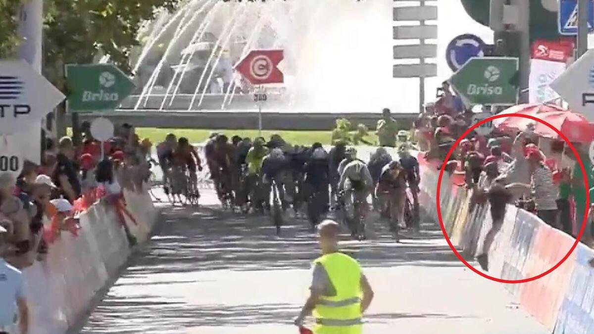 2022 ボルタ・ア・ポルトガル・バレンシアナでゴール前で観客とぶつかりそうに
