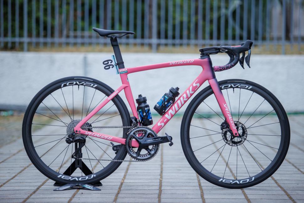FACT 12RカーボンS-Worksフレームは、1931年以来ジロのリーダーが着用しているマリアローザカラーにカスタムベイントされた。