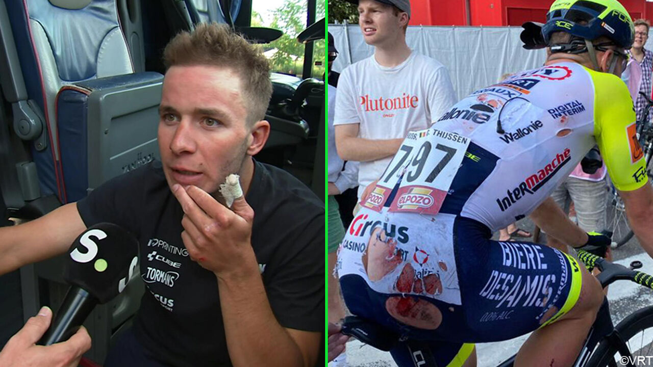 Een zwaar gehavende @GerbenThijssen na de finish in Utrecht. Of hij verder kan, is nog onzeker…