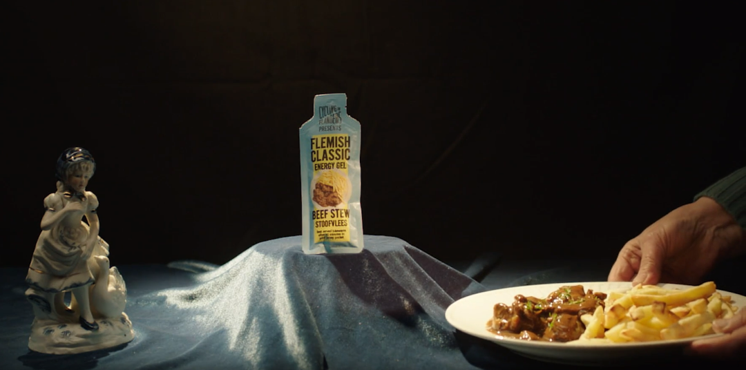 だからこそ私たちは、フランダースの伝統的なトップ料理であるシチューとフライドポテトからインスピレーションを得た、完璧な組み合わせのエネルギージェルを開発したのです。」