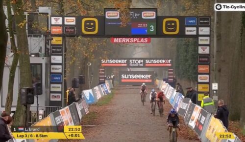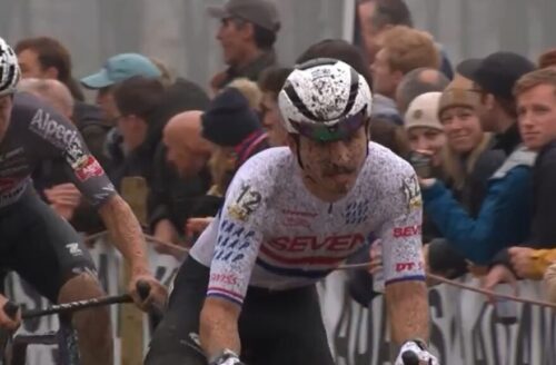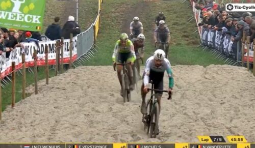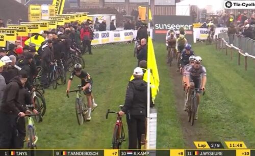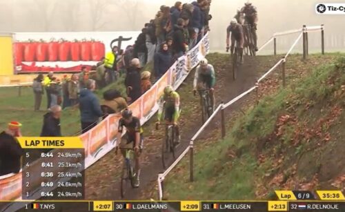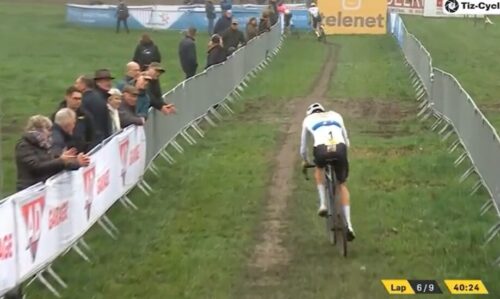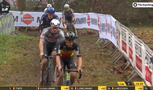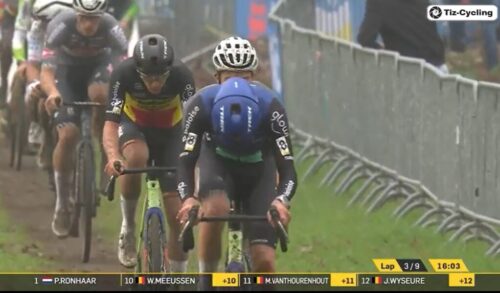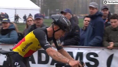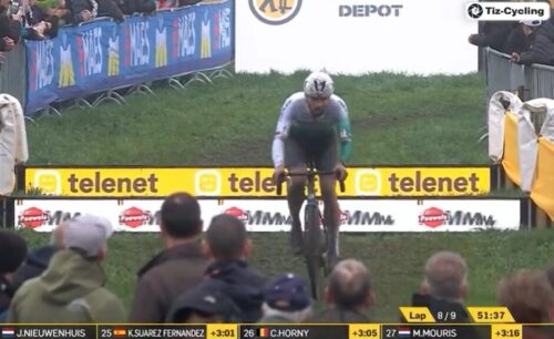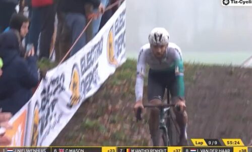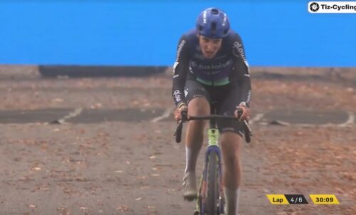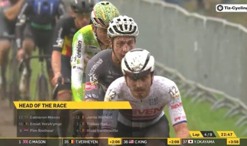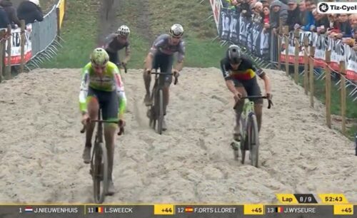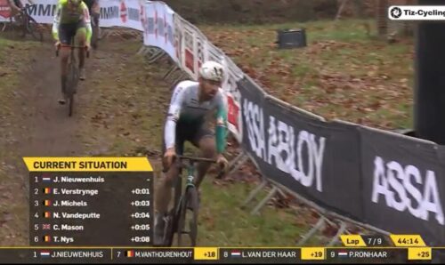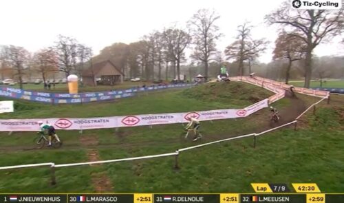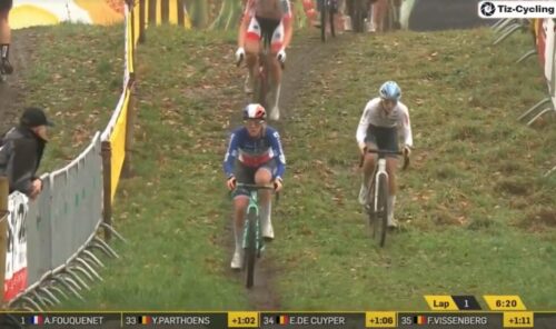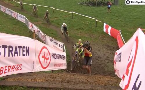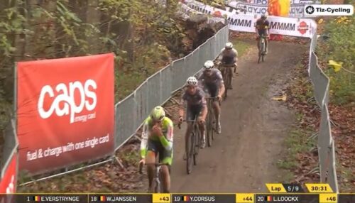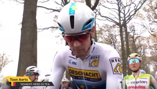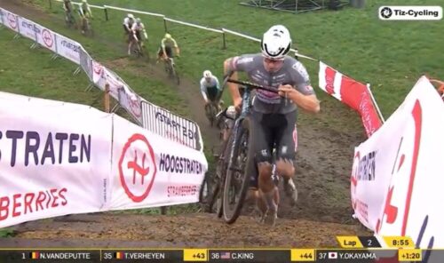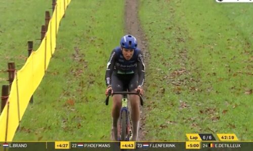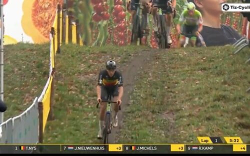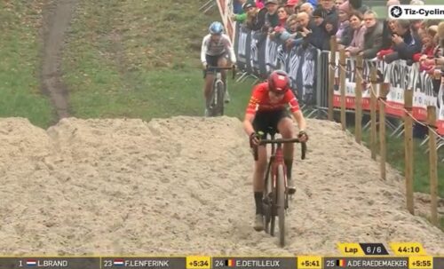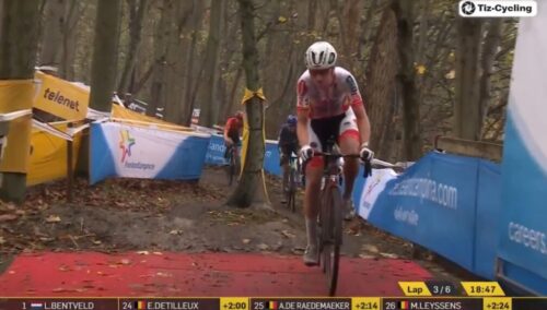 ヨーロッパ選手権シクロクロス王者のトーン・アールツは大きく遅れている。