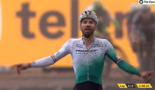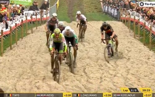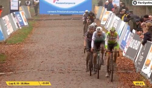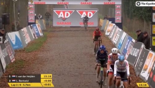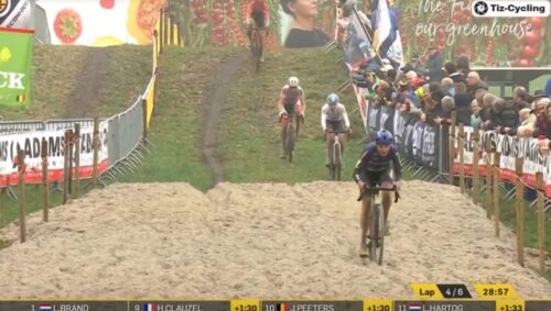 表彰台争いはまだわからない。インゲ・ファンデルヘイデンは泥でおくれて4位に後退。