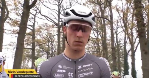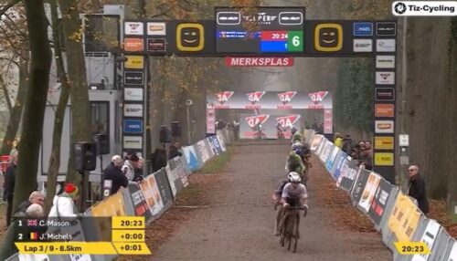 キャメロン・メイソントップで通過。2番手は、Alpecin-Deceuninckのイェンテ・ミシェルズ22歳。