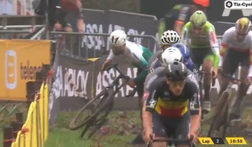 後方でヨリス・ニューウェンハイスが滑って落車。