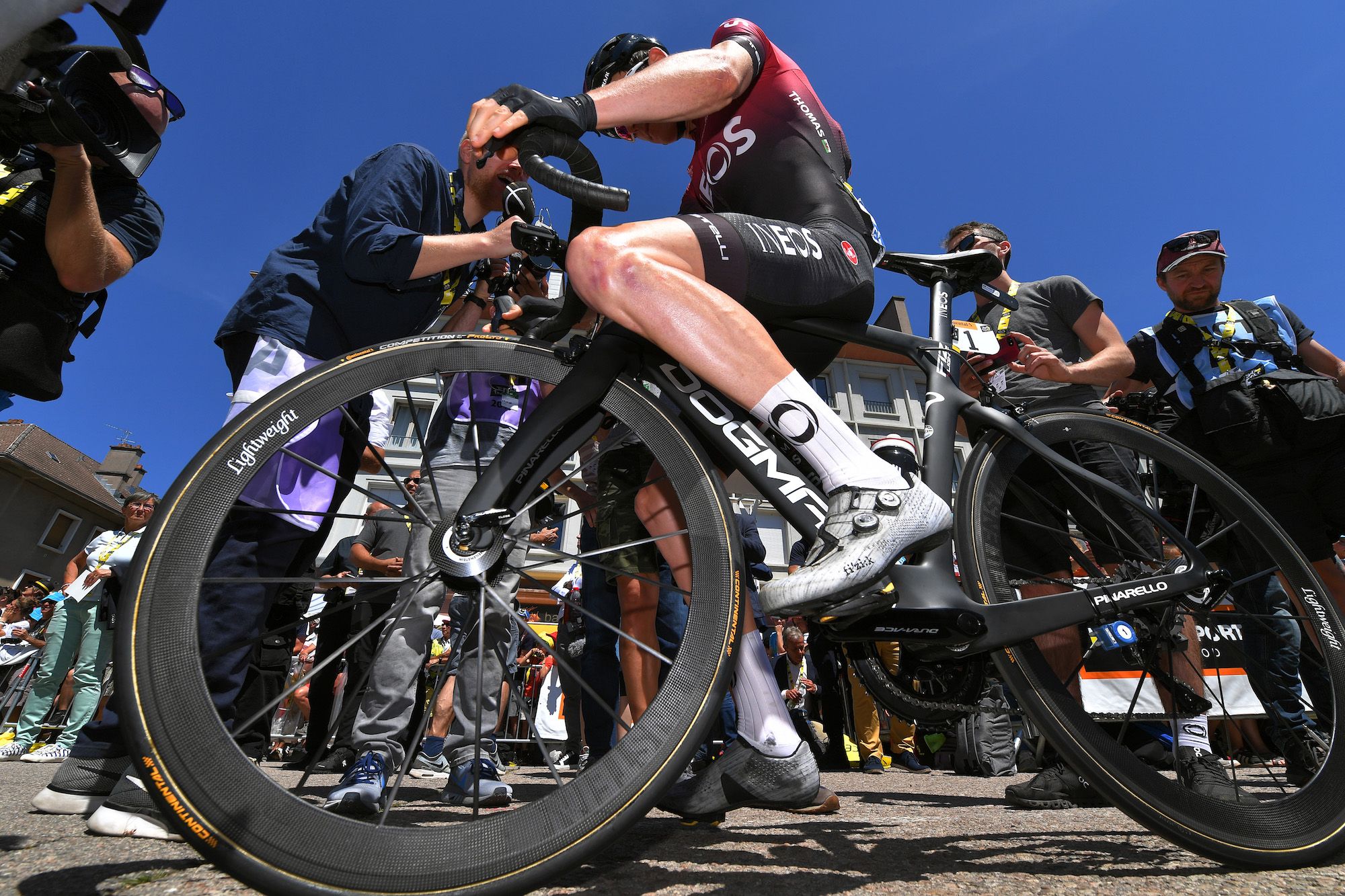 Shimanoの代わりにTeam Ineosは、ツール第5ステージで、Lightweightホイールをはいて走っている。