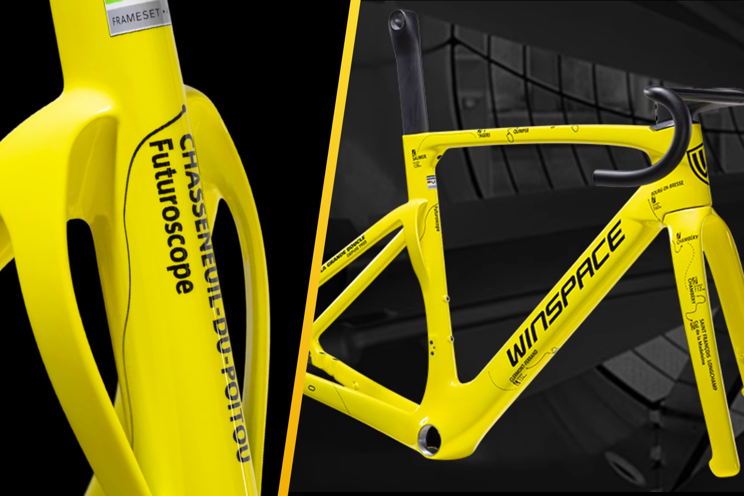 フレームにはT1000とT1100カーボンファイバーが使用され、ヘッドチューブ周辺はケブラーで補強されているとのこと。