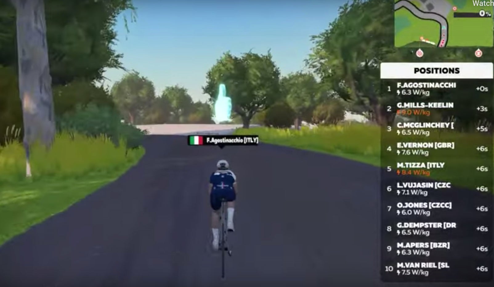 Filippo Agostinacchioは、短い登りは得意だが長い登りはもたないと言う。Zwiftレースが40分を越えていたら間違いなくドロップしていたと言っている。