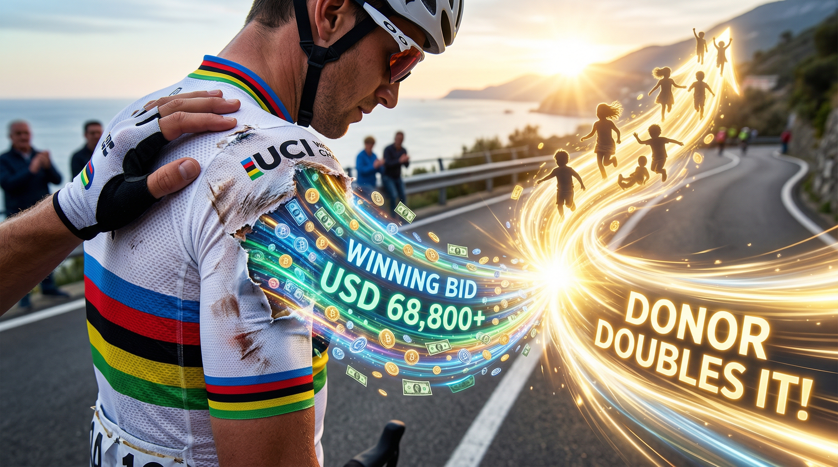 レース中の落車というアクシデントを乗り越えて掴んだ勝利の証が、今度は困難な状況にある若者たちの未来を切り拓く力になろうとしているのだ。