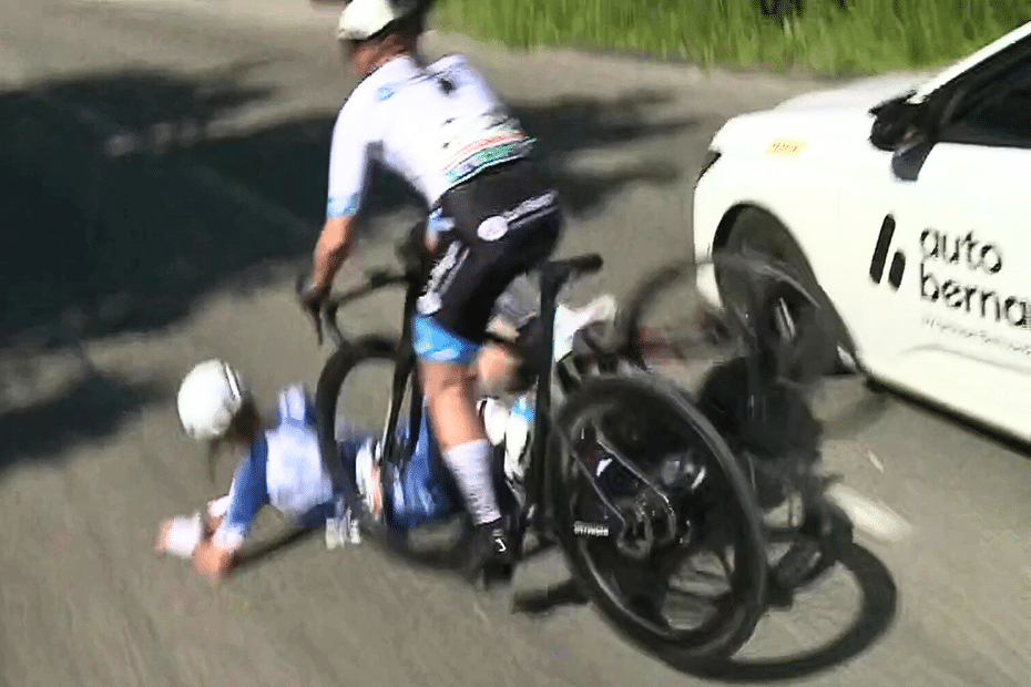 Amandine Muller (Grand Est) et Célia Gery (Auvergne-Rhône-Alpes) ont été accidentellement heurtées par le véhicule de l’équipe Auvergne-Rhône-Alpes, au 31ᵉ kilomètre de la course féminine U19 des championnats de cyclisme de l’avenir 2024https://t.co/tQH29yyWZk pic.twitter.com/7LHxwEACmO