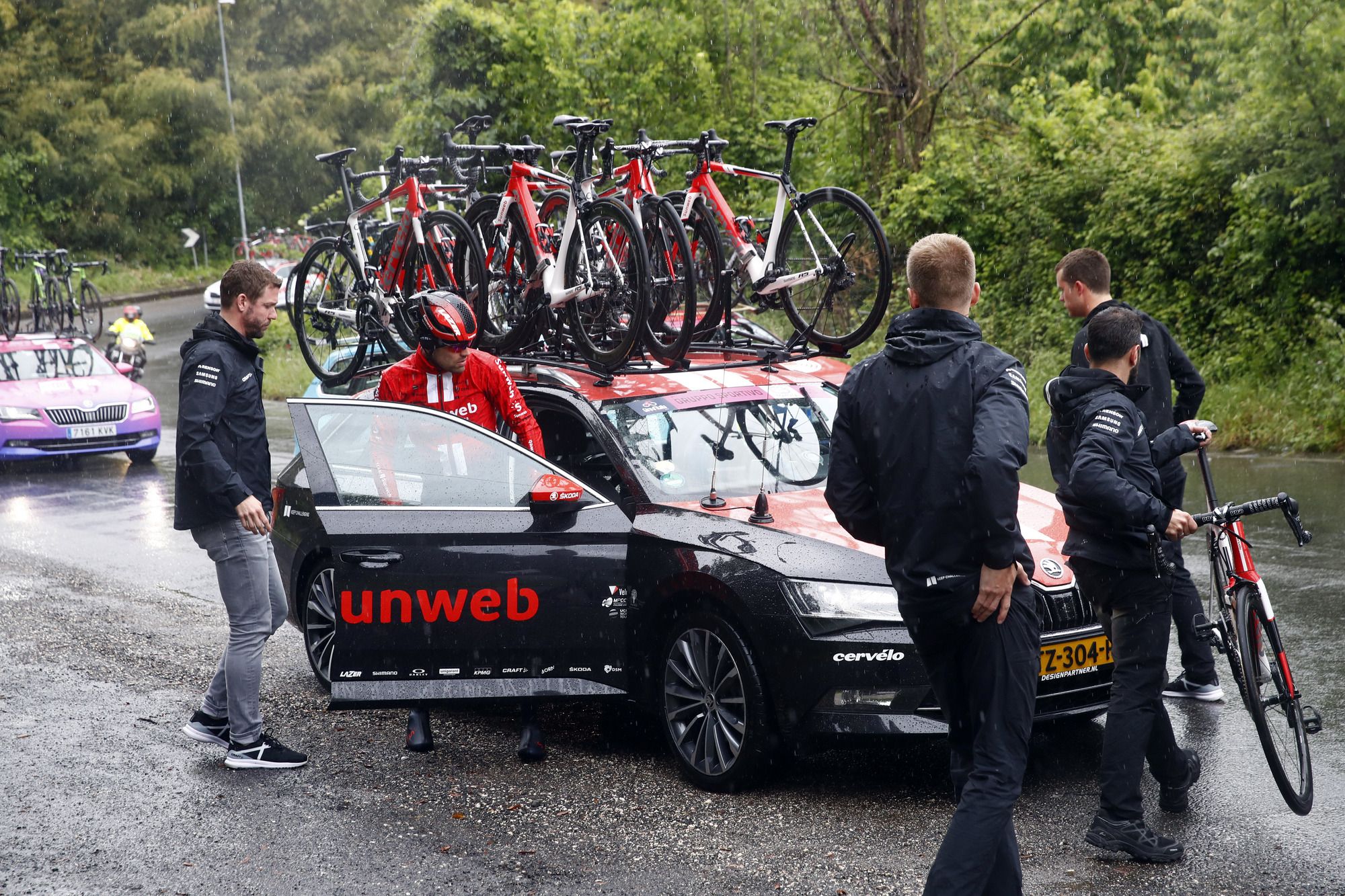 デュムランの左膝の痛みは、豪雨と相まって大きすぎた。彼のGiro d’Italiaが終ってしまった。
