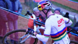 パンクしたのか、グレッグ・ファンアーヴェルマートがバイク交換。一人前に待っていて無事に集団合流。