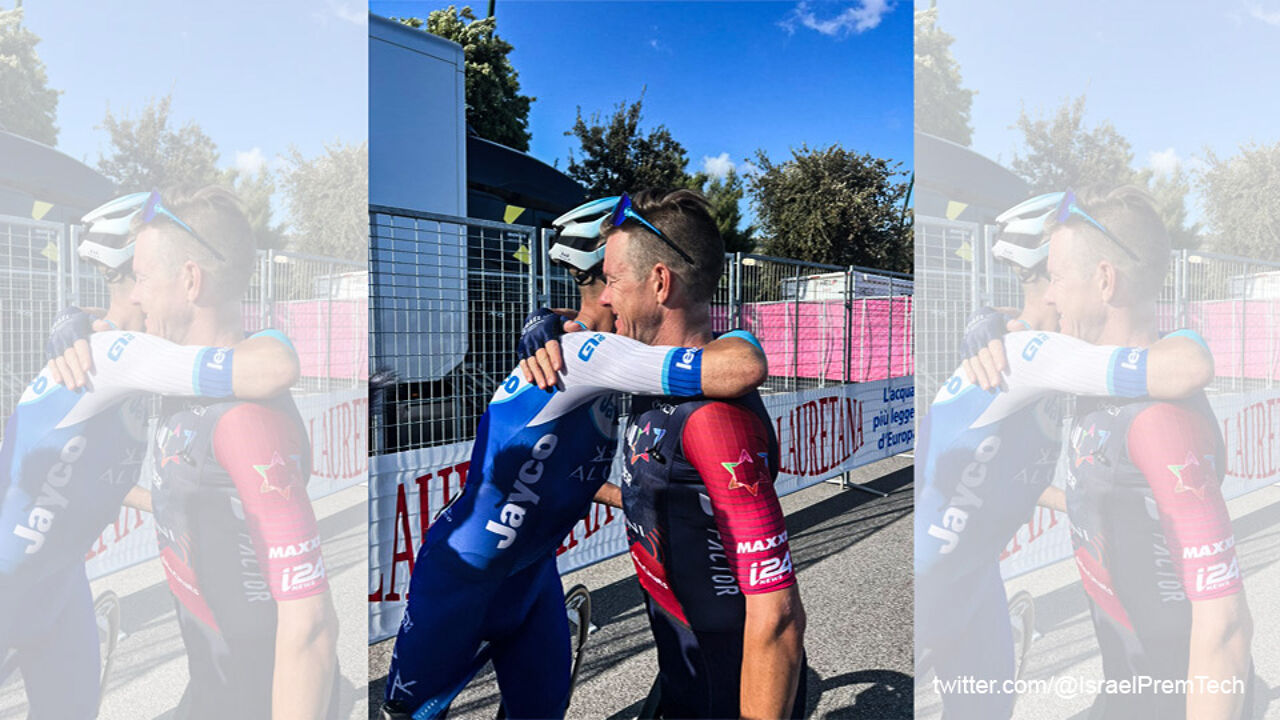 Israel – Premier Techのサイモン・クラークとTeam Jayco AlUlaのアレサンドロ・デマルキはゴール手前300mで捕まってしまった。