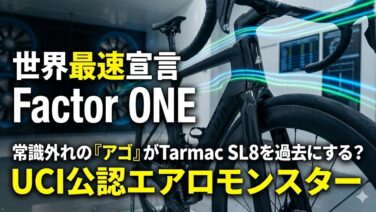 英国のプレミアムブランドFactorが、空気力学の常識を書き換える、とんでもない一台を発表した。その名は新型「Factor ONE」。 彼らが掲げたキャッチコピーは強烈だ。世界最速のUCI公認ロードバイク。 これまでエアロロード界を支配して...