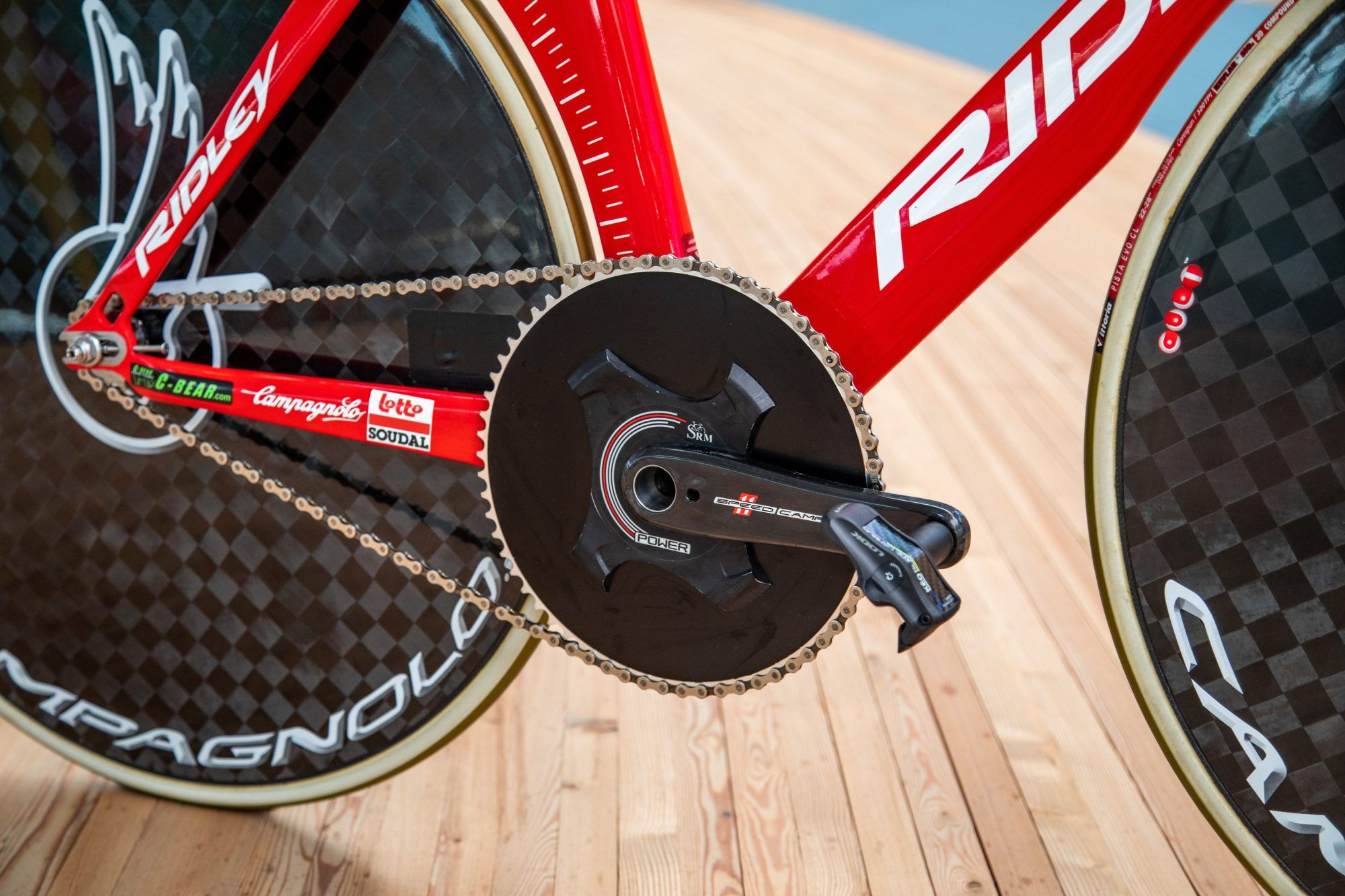 その、ギアがなんとでかい! ブラットリー・ウィギンズのギアと比べてみましょう。