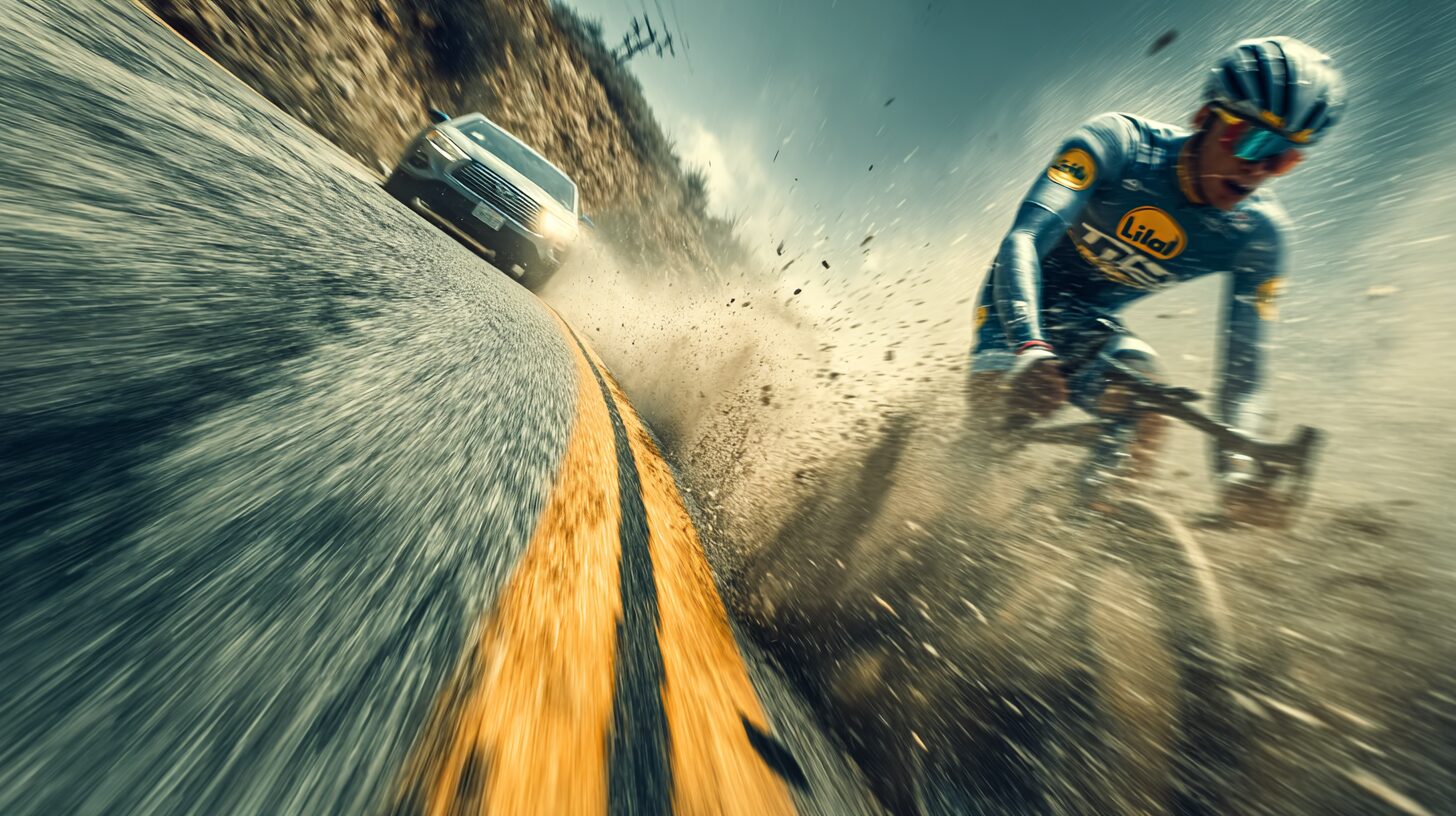 それは、彼がお馴染みのLidl-Trekジャージに身を包み、ロードバイクで峠を下る際、猛スピードで一般の自動車を次々と追い越していくという衝撃的な映像だ。