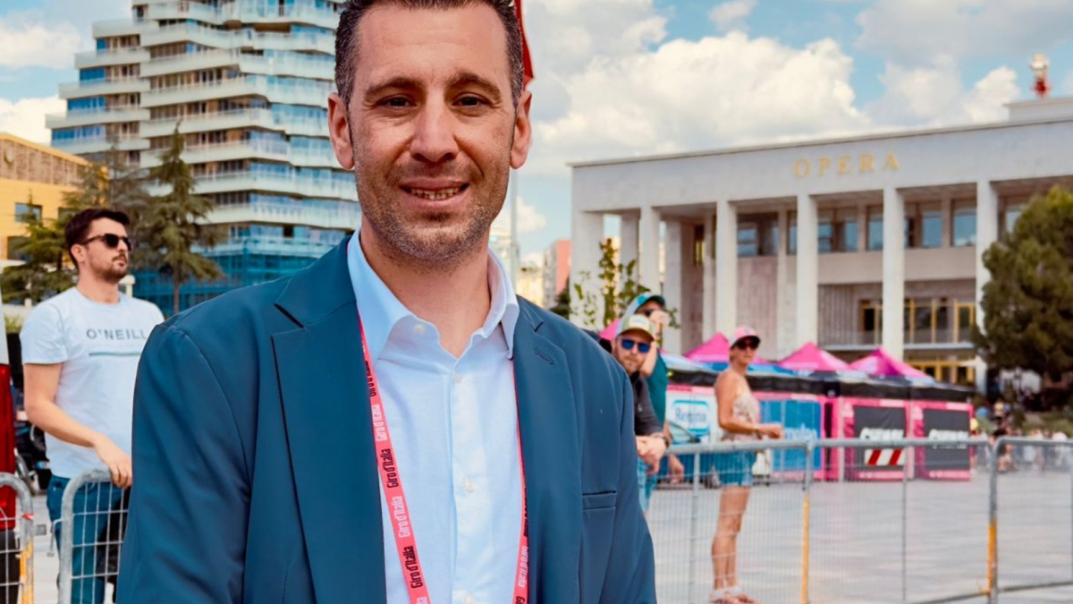ヴィンチェンツォ・ニバリは、ジロ・デ・イタリアが開催されたアルバニアでインタビューに答えている。