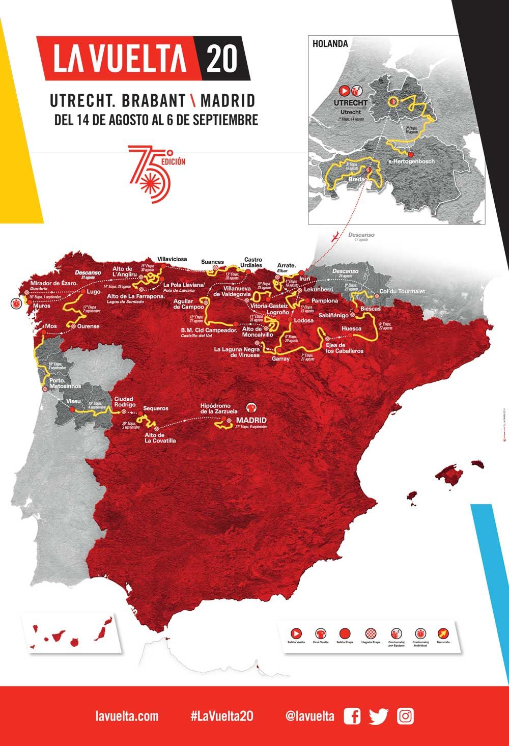 ほぼ完全にスペインの北半分に焦点を当てた2020年のVueltaルートは、カタルーニャを含む国の南部および東部を完全に迂回し、オランダのレグの後、バスク地方の国境都市イルンでステージ4を開始する。