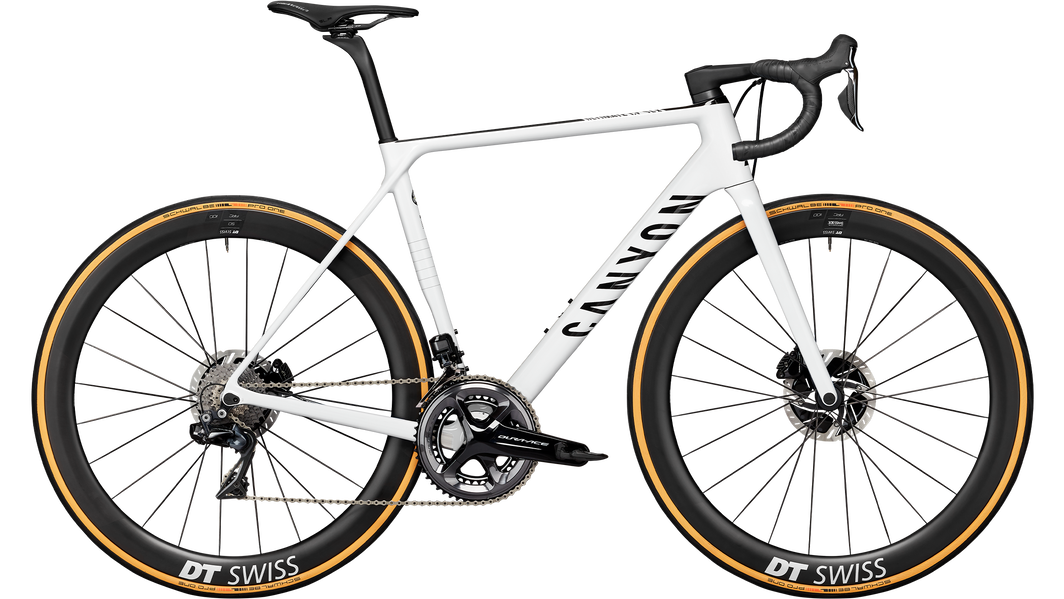 デュラエースバージョンでは、ケーブルが見えるものの、統合されたコックピット、DT Swiss ARC 1100 DicutホイールとSchwalbe Pro One Evo 25mmタイヤ、そしてSelle Italia SLR Boost Superflow Kit Carbonioサドルが採用されている。