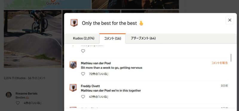 オベットのStrava投稿に対し、マチューは「あと1週間少しで緊張してきた」とコメントしており、オベットも「僕たちは一緒に挑むんだ」と返信している。