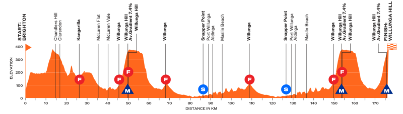 今年は3回ウィランガヒルを上るというコース設定だったのに、これがなくなるのは残念。とくに2回目のウィランガヒルは20km手前にあったのでタイム差が付きやすいコースになっていた。