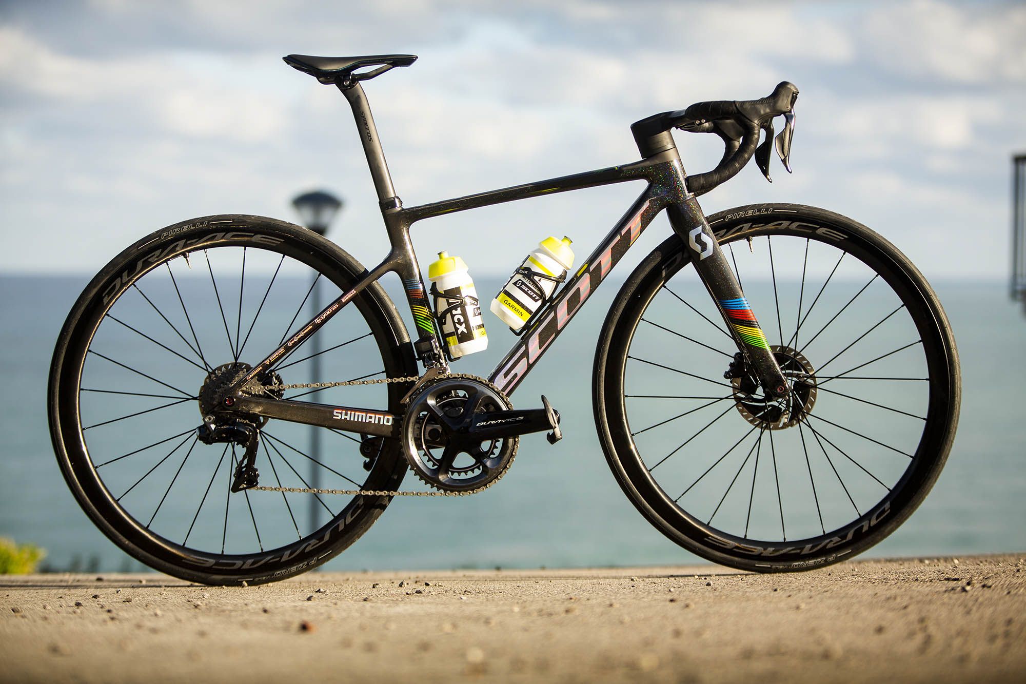 105kmを逃げ切った記録と世界チャンピオンの虹をイメージしたSCOTT Addict RCは光によってきらめいている。彼女のバイクを見てみよう。