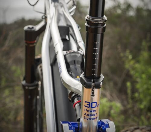 この特別版 e-Bike には、特許取得済みのデュアル ツインフレーム、カスタマイズされた RockShox Deluxe Select + リア ショック、完璧にフィットした 30周年記念メタル バッジ、30 周年記念パワー アシスト システム デカールなど、ライダーのお気に入りの機能が含まれている。